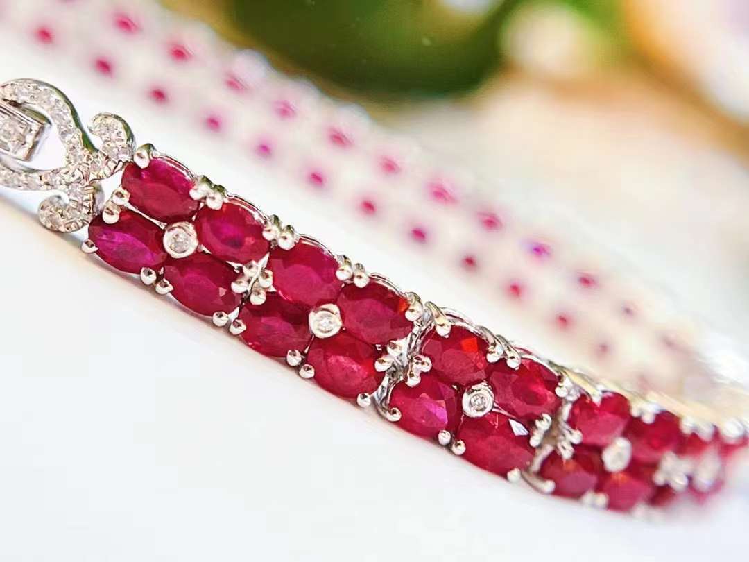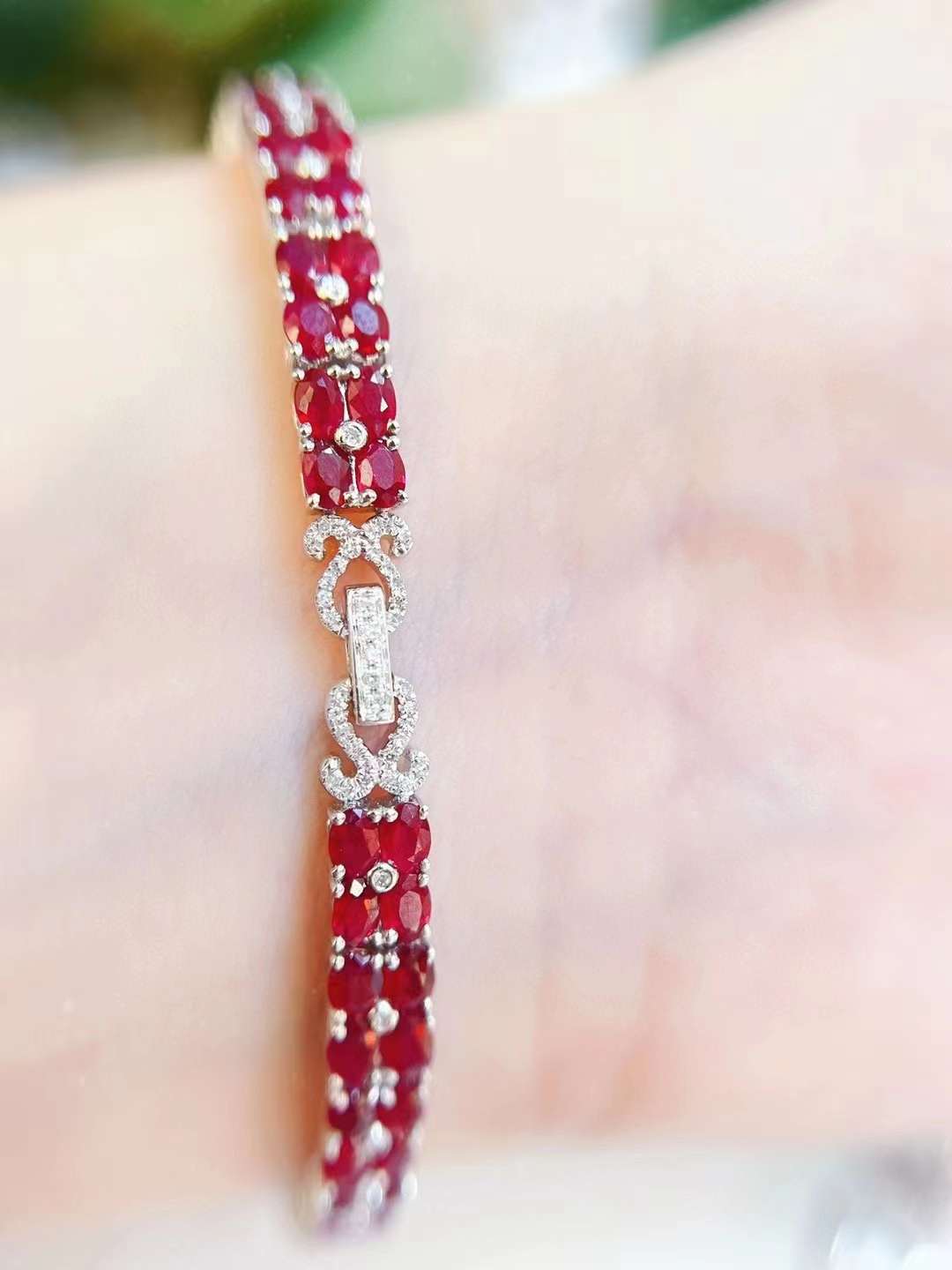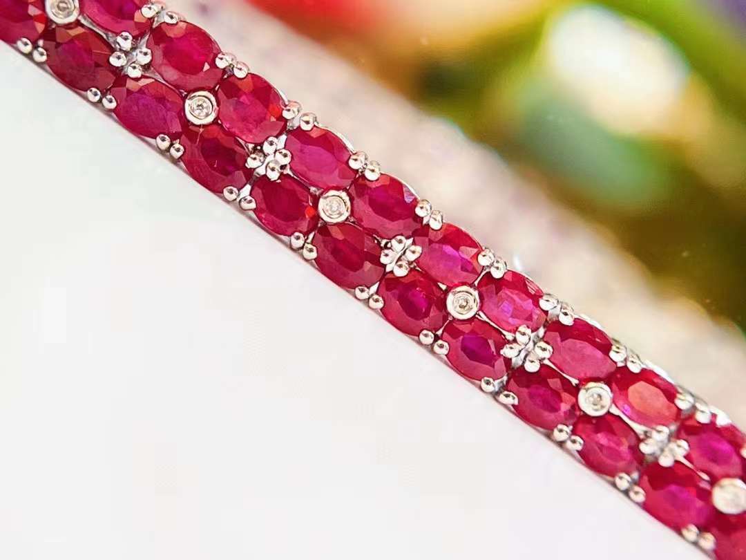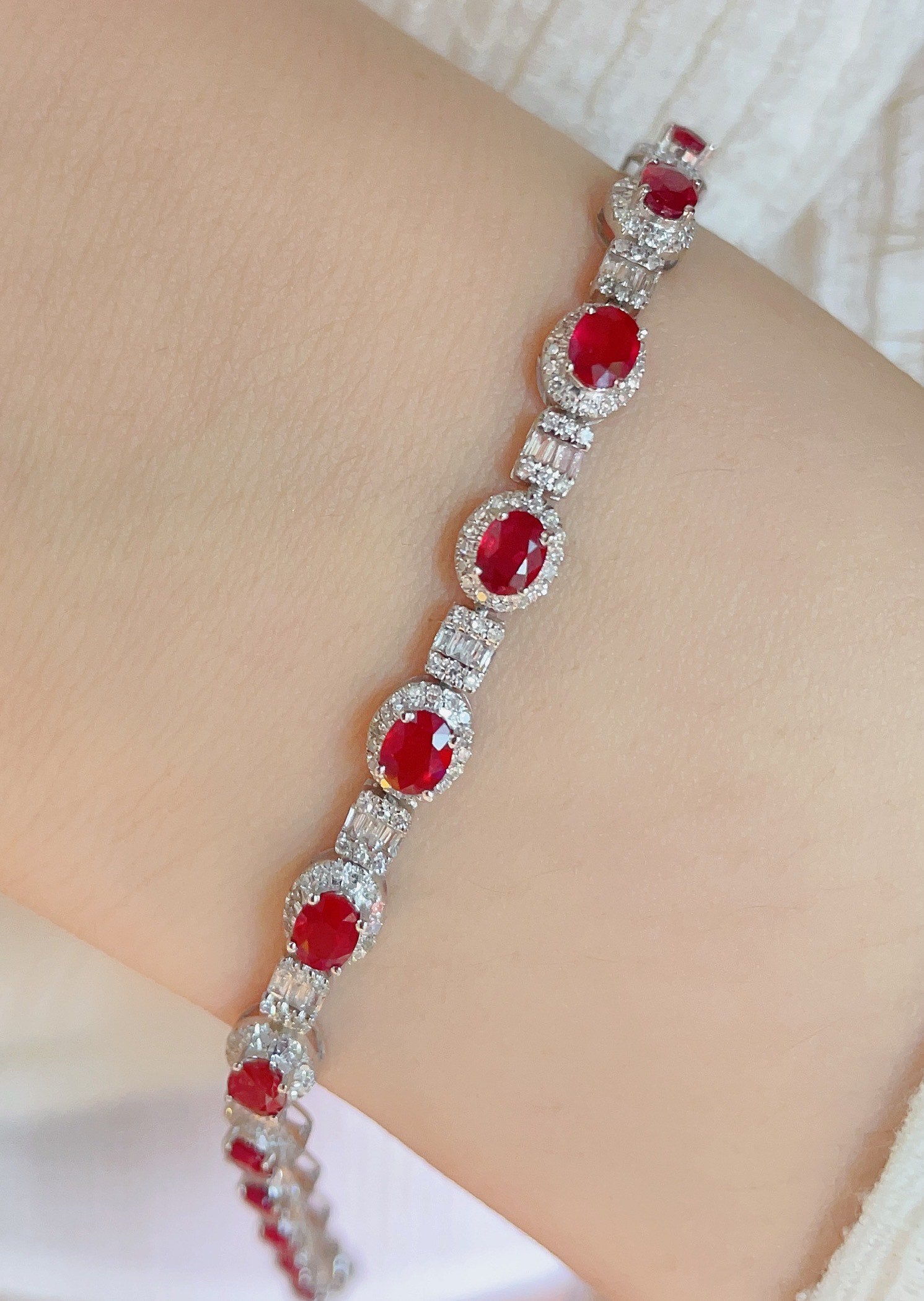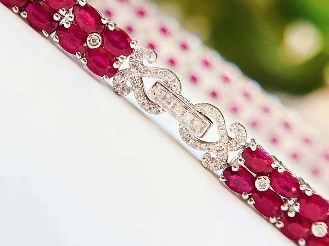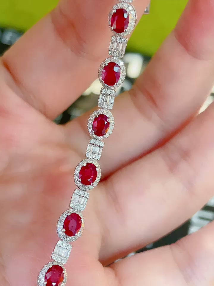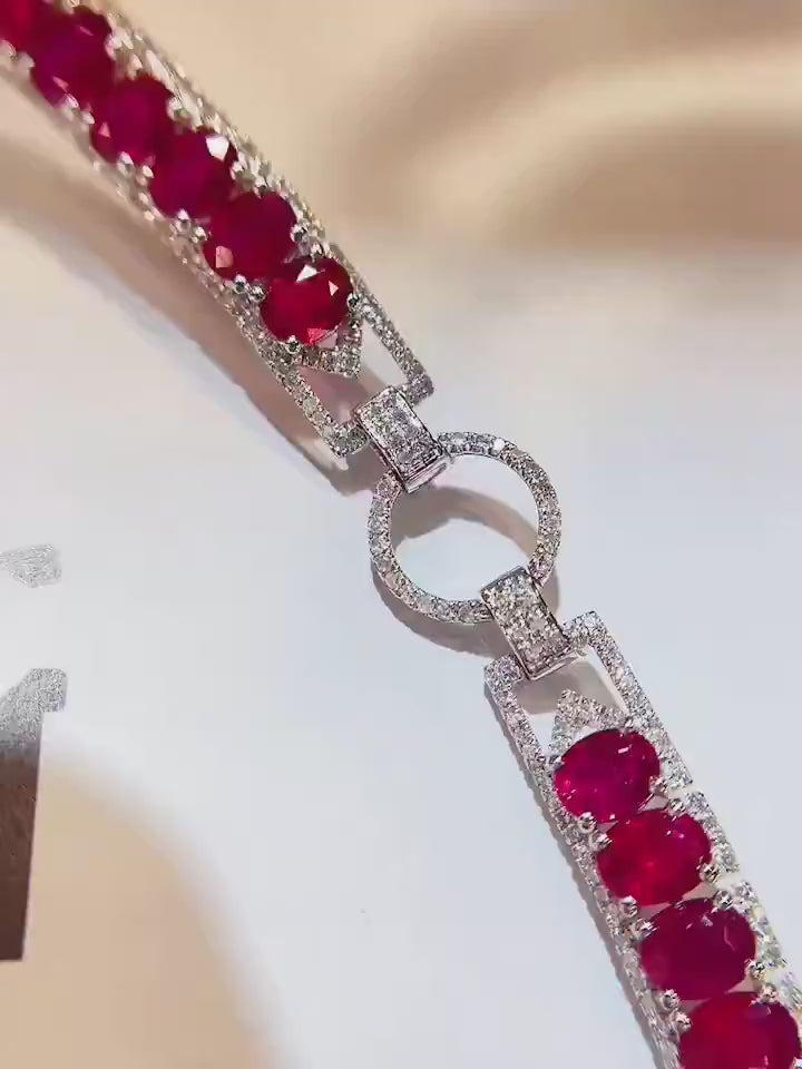 Luxury Natural Ruby Bracelet with Diamonds, Unique Art Deco Design, 18K Natural Diamond Bracelet