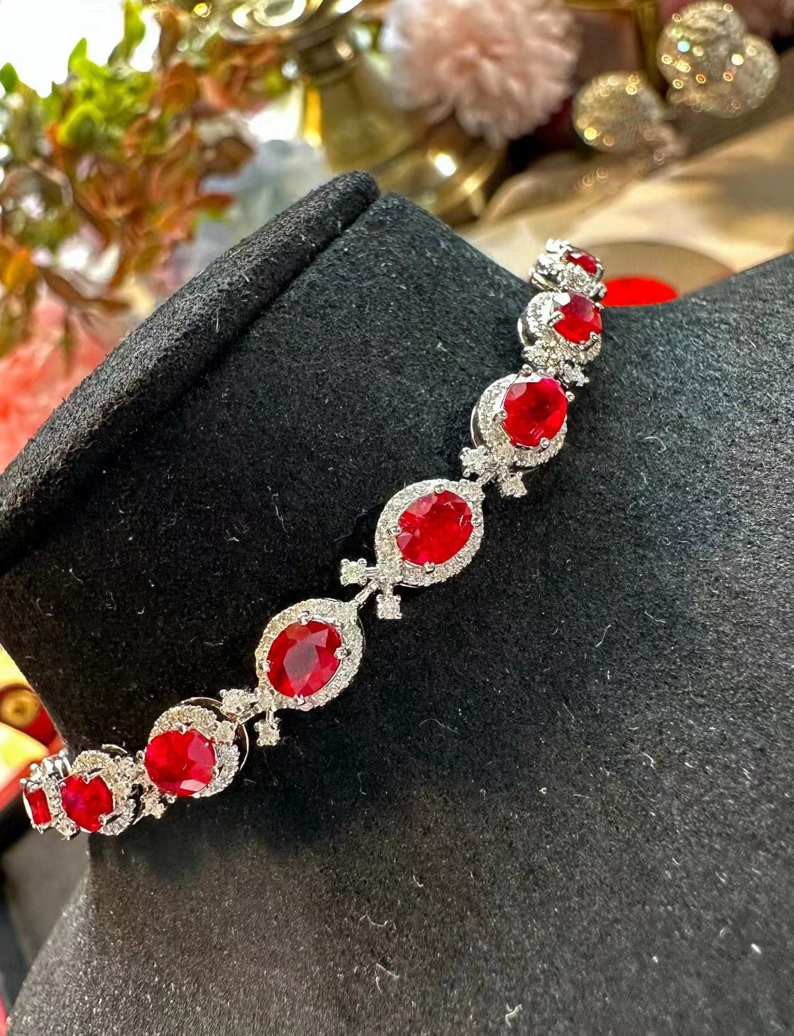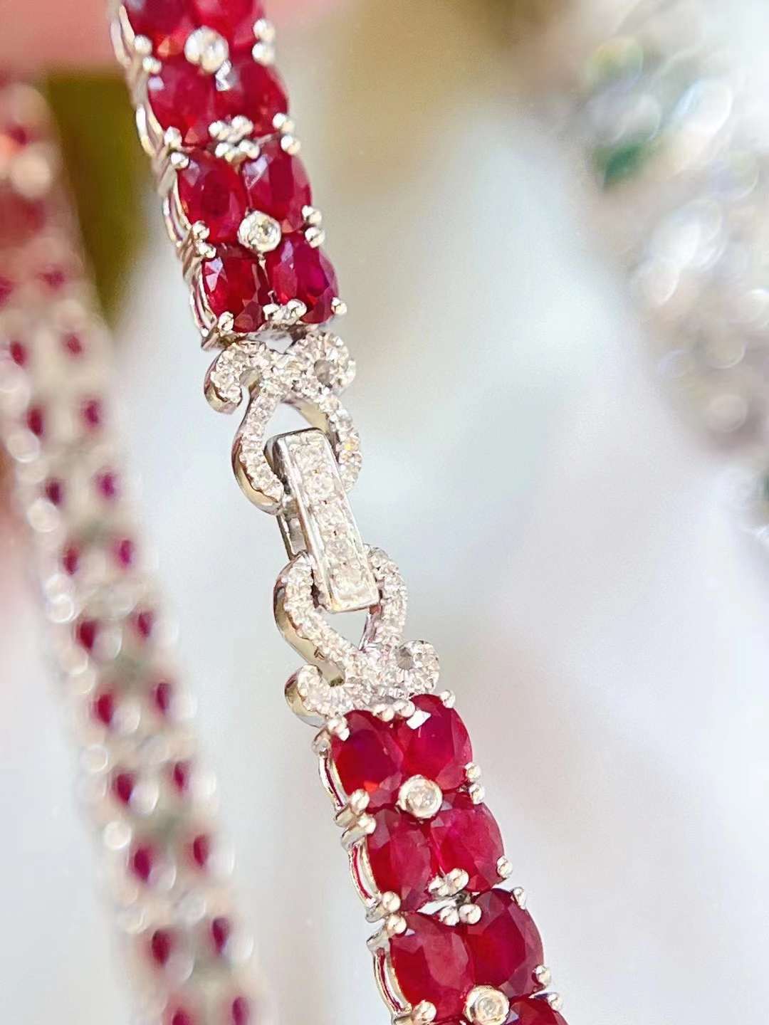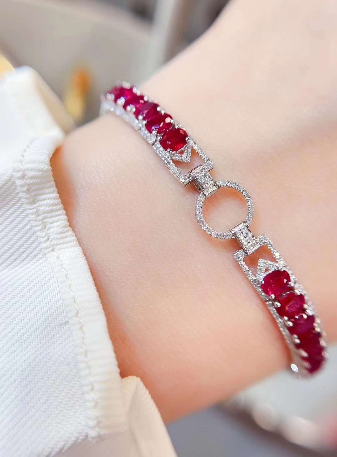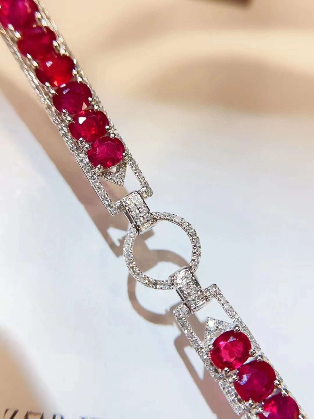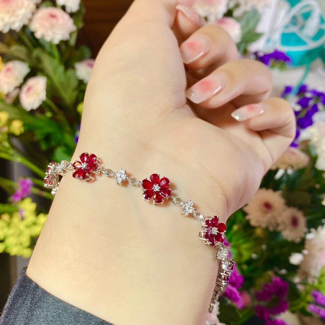 Luxury Natural Ruby Bracelet with Diamonds, Unique Art Deco Design, 18K Natural Diamond Bracelet