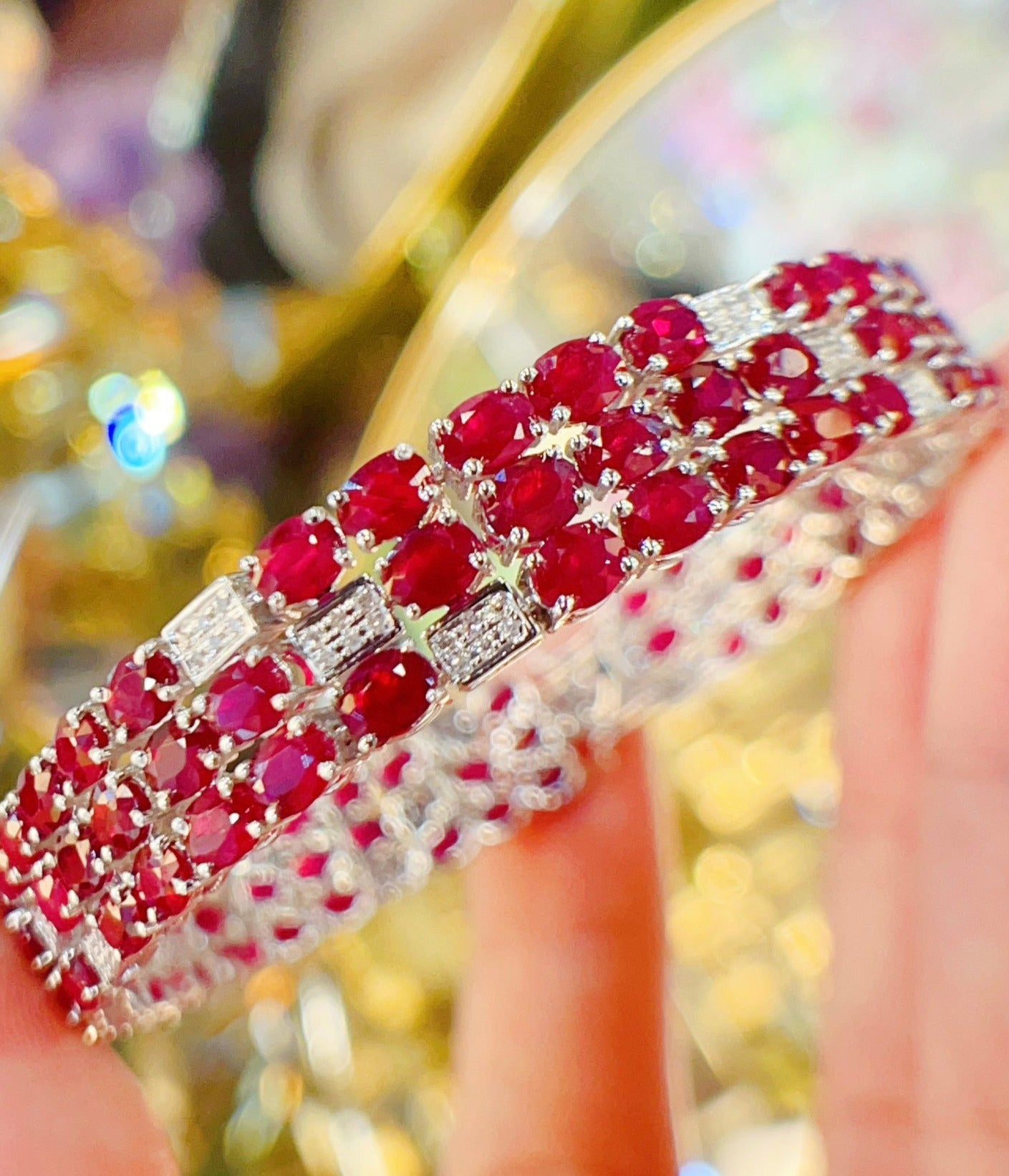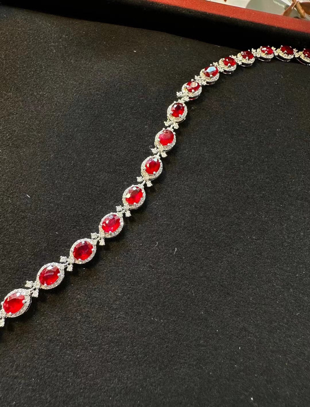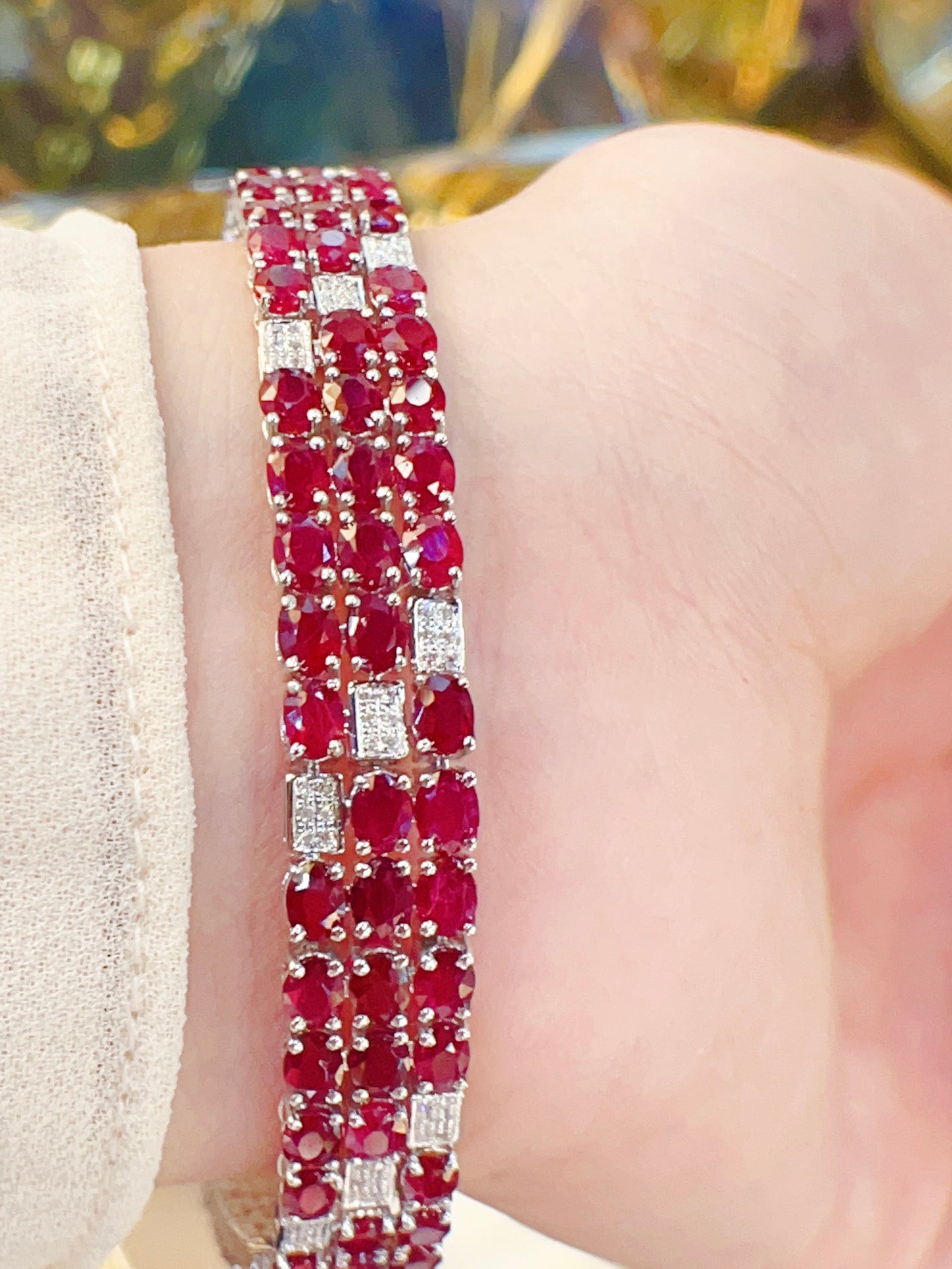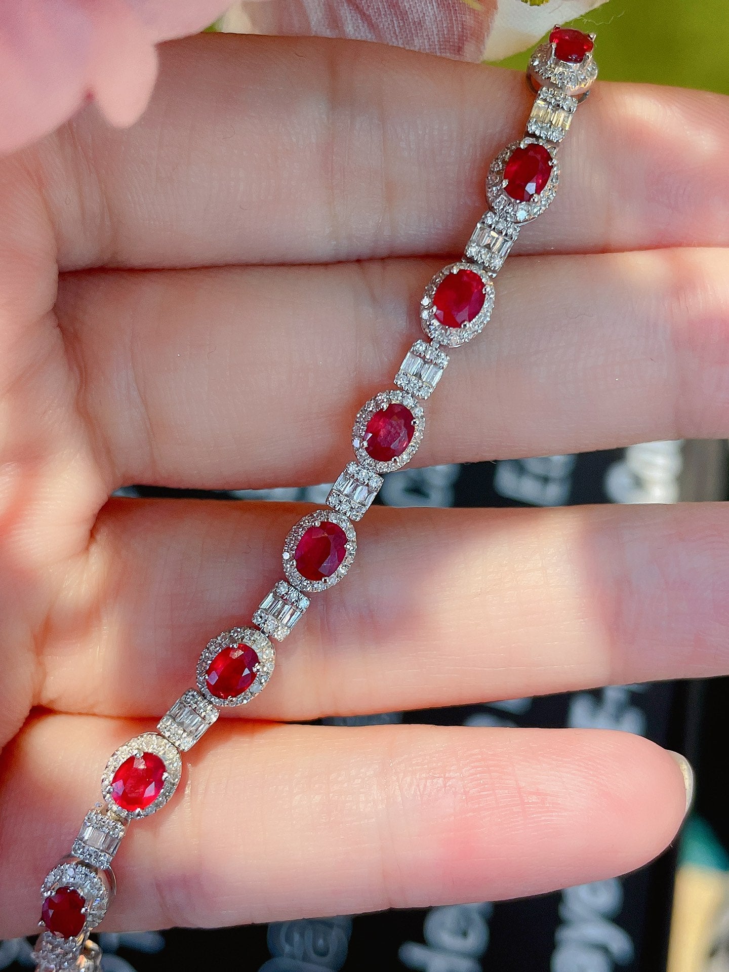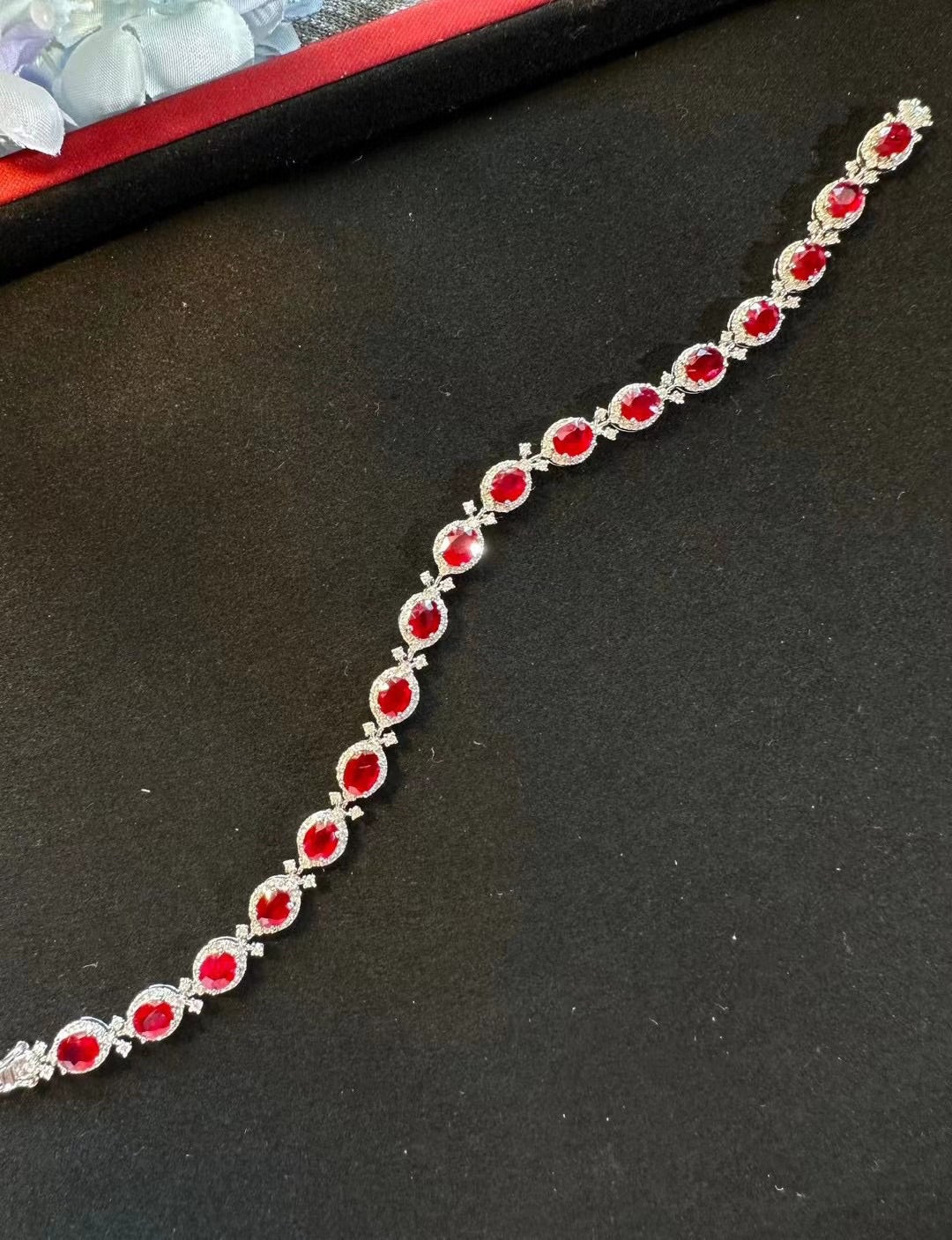 Luxury Natural Ruby Bracelet with Diamonds, Unique Art Deco Design, 18K Natural Diamond Bracelet
