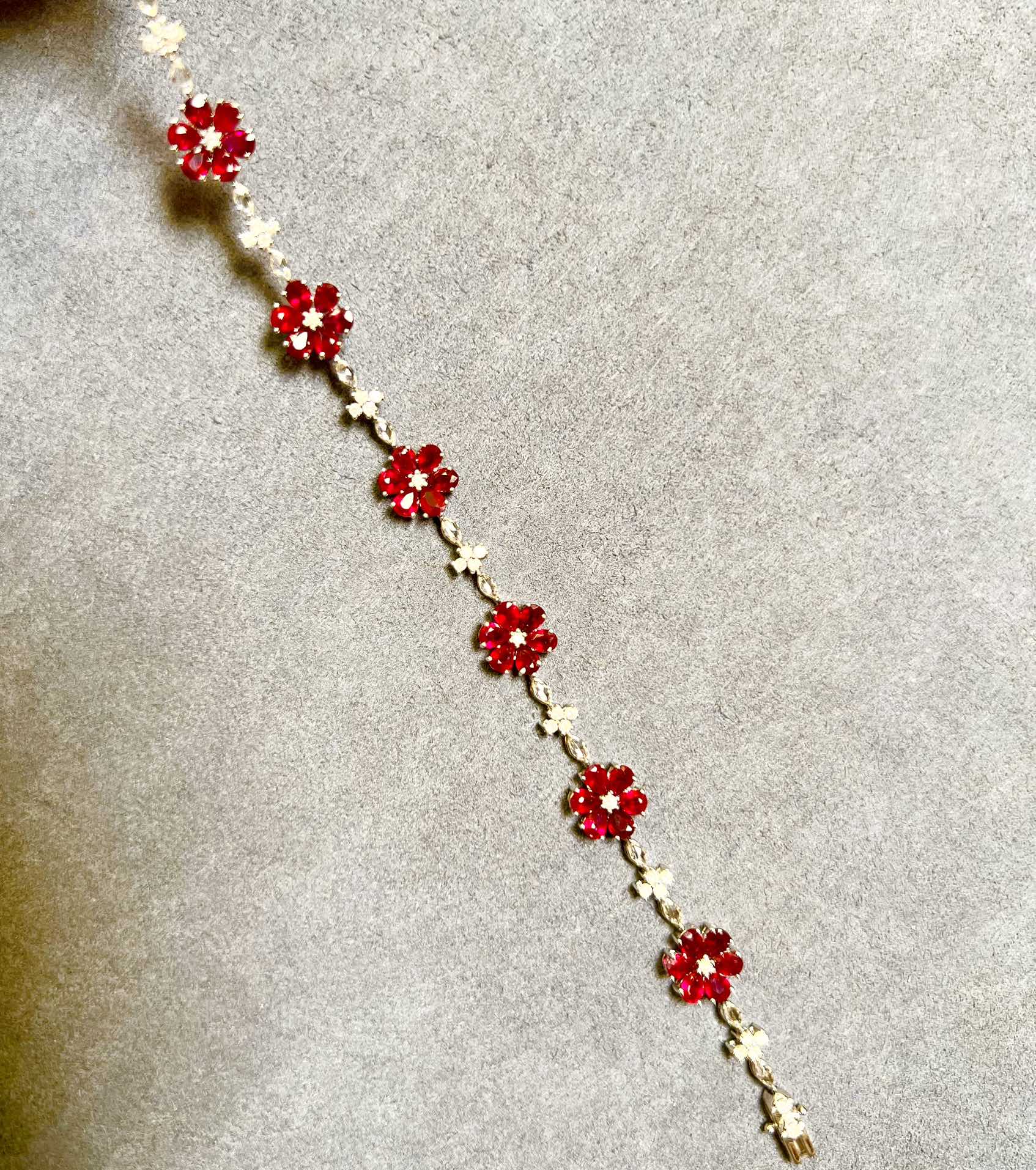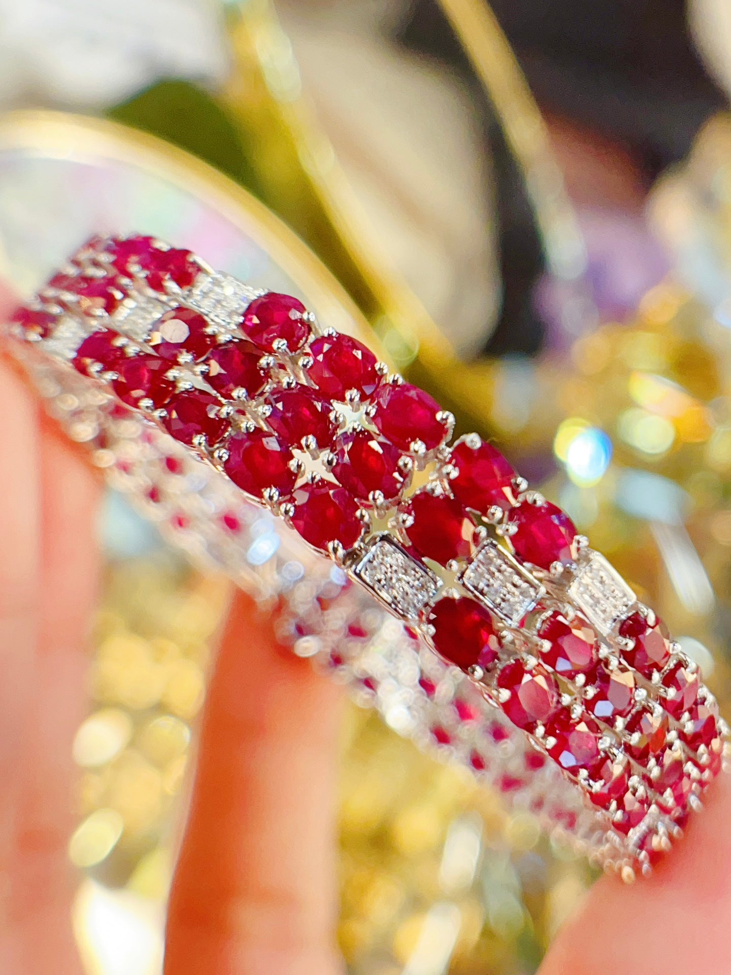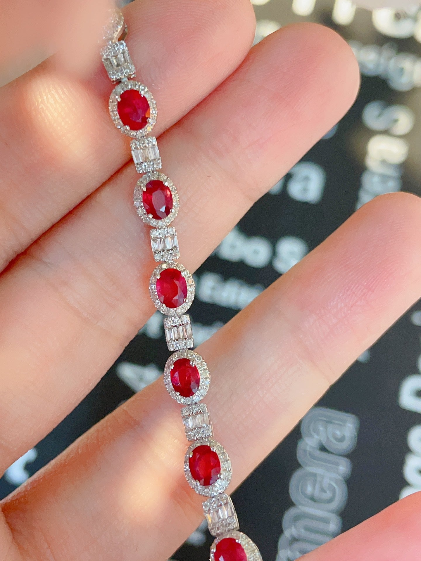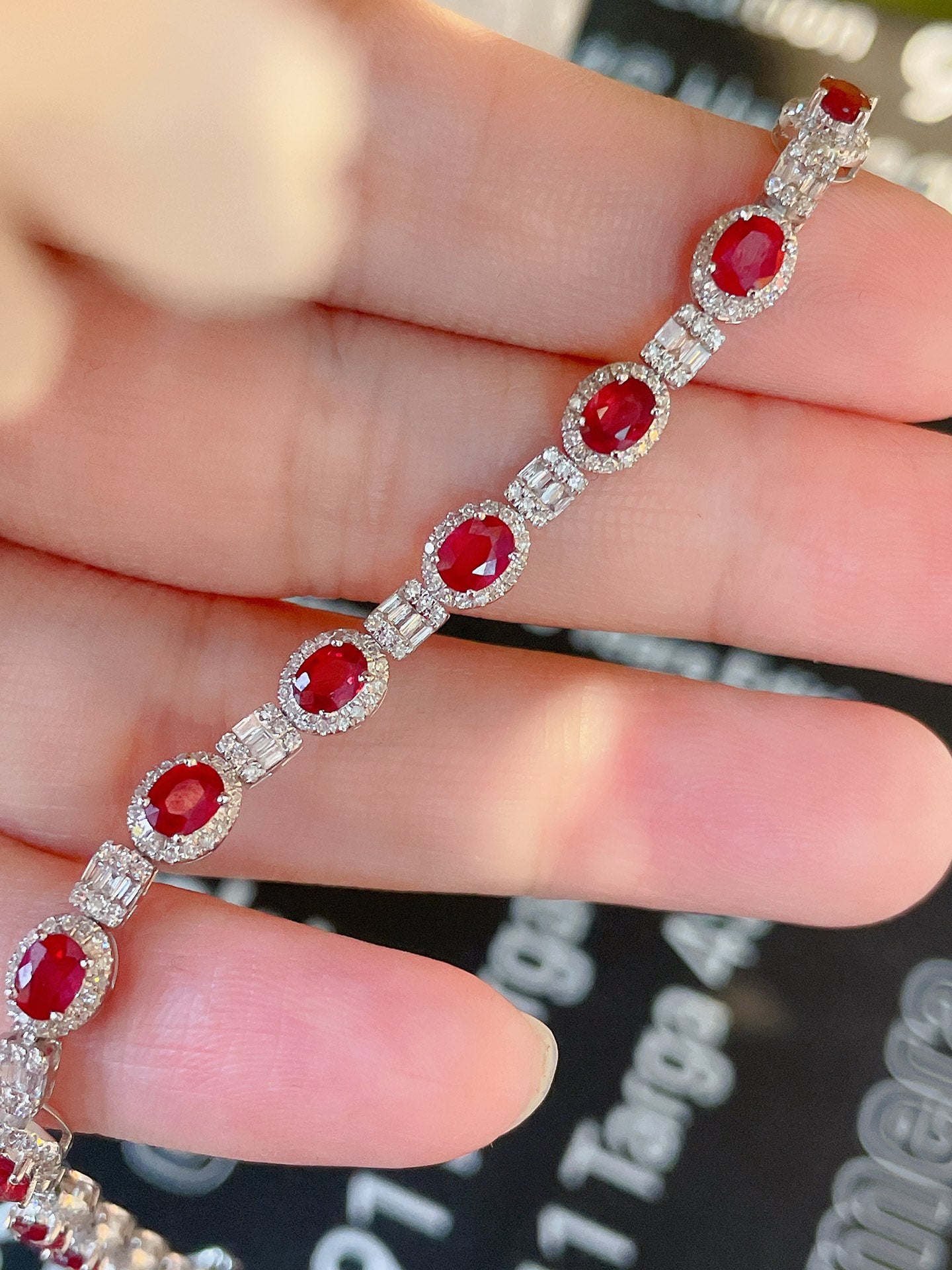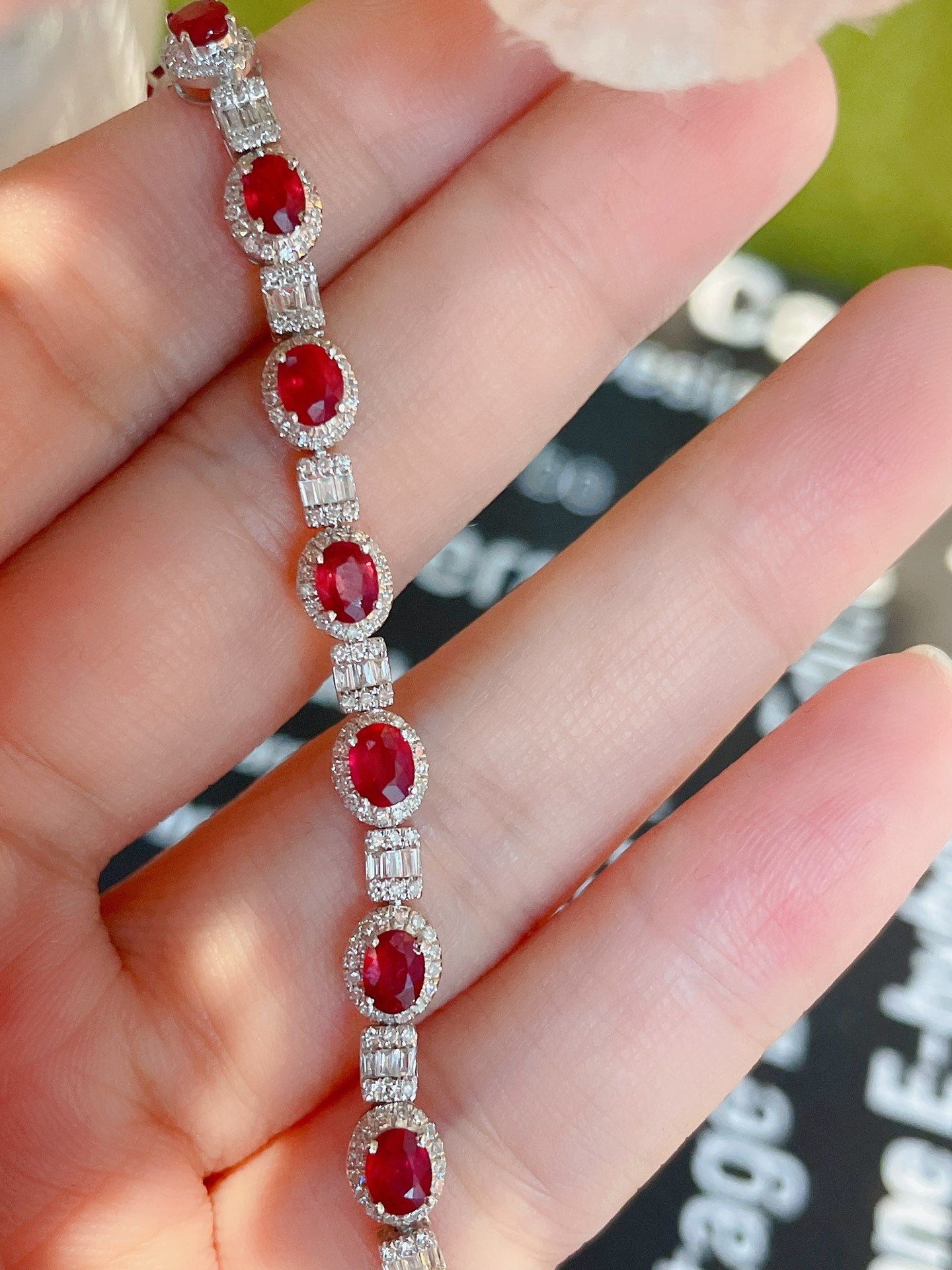 Luxury Natural Ruby Bracelet with Diamonds, Unique Art Deco Design, 18K Natural Diamond Bracelet