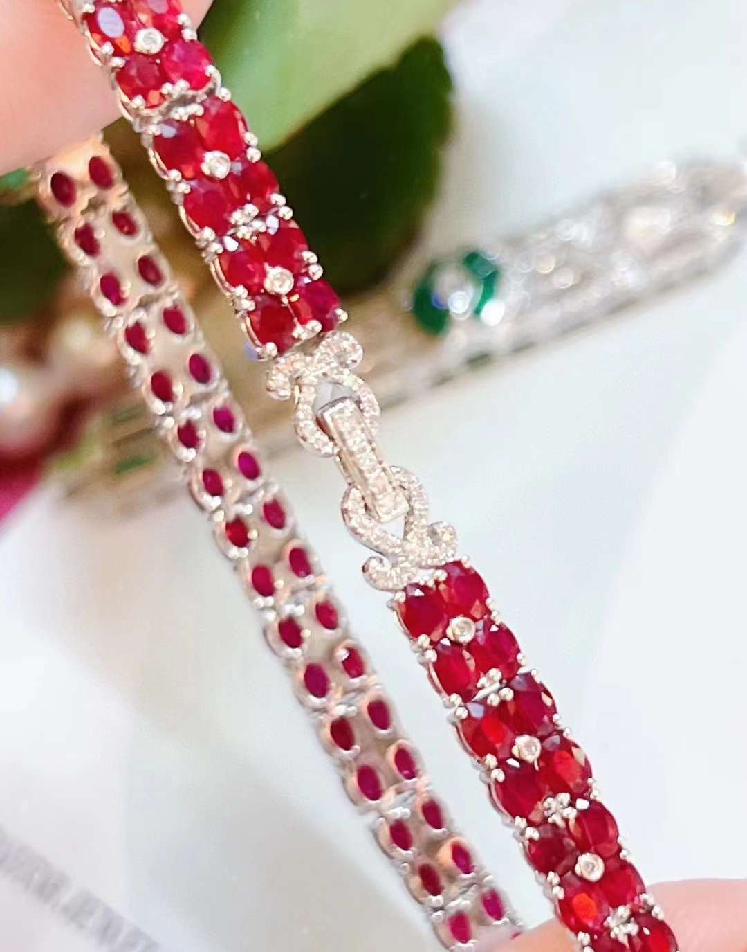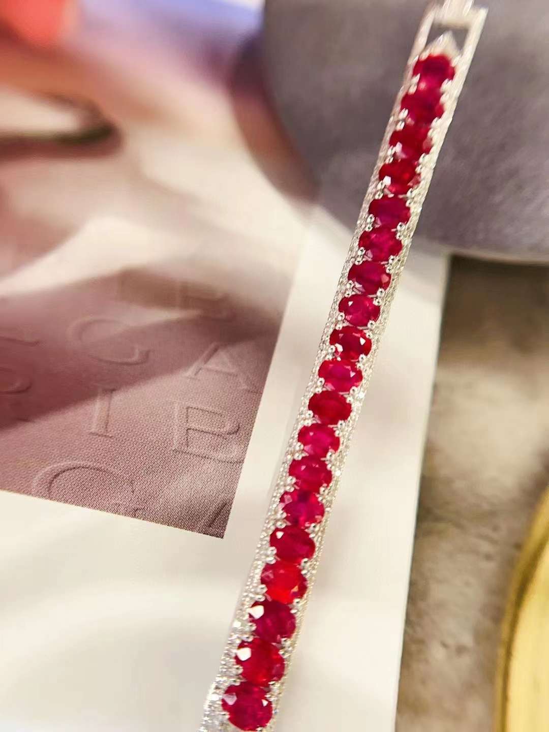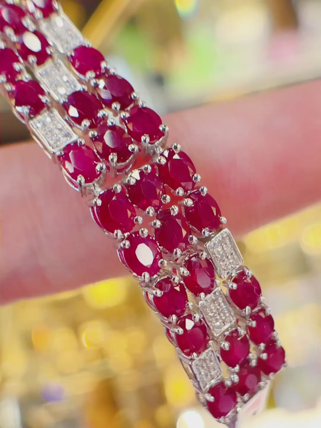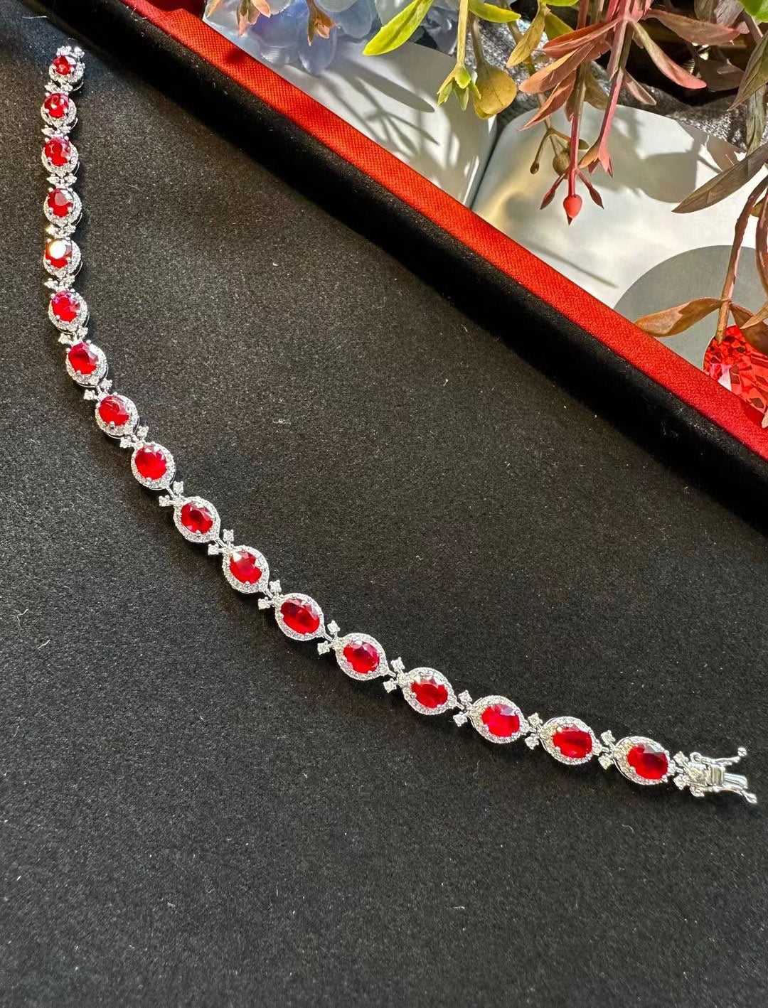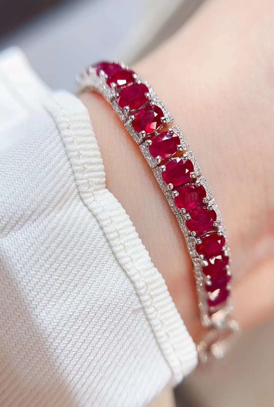 Luxury Natural Ruby Bracelet with Diamonds, Unique Art Deco Design, 18K Natural Diamond Bracelet