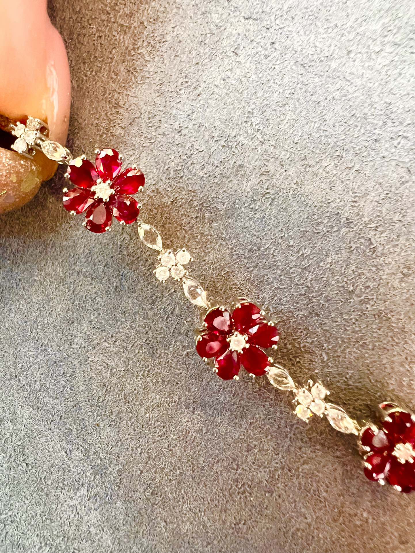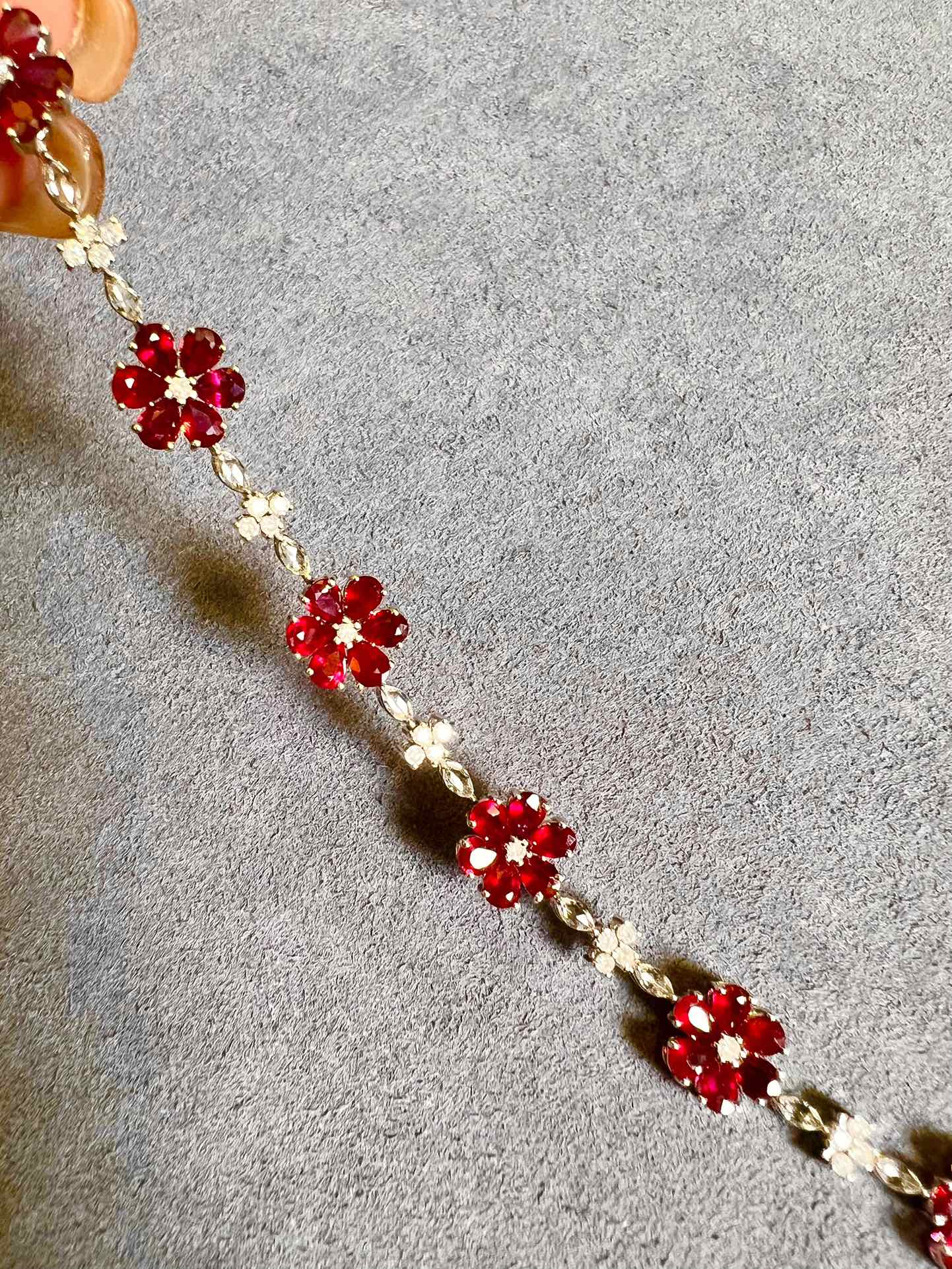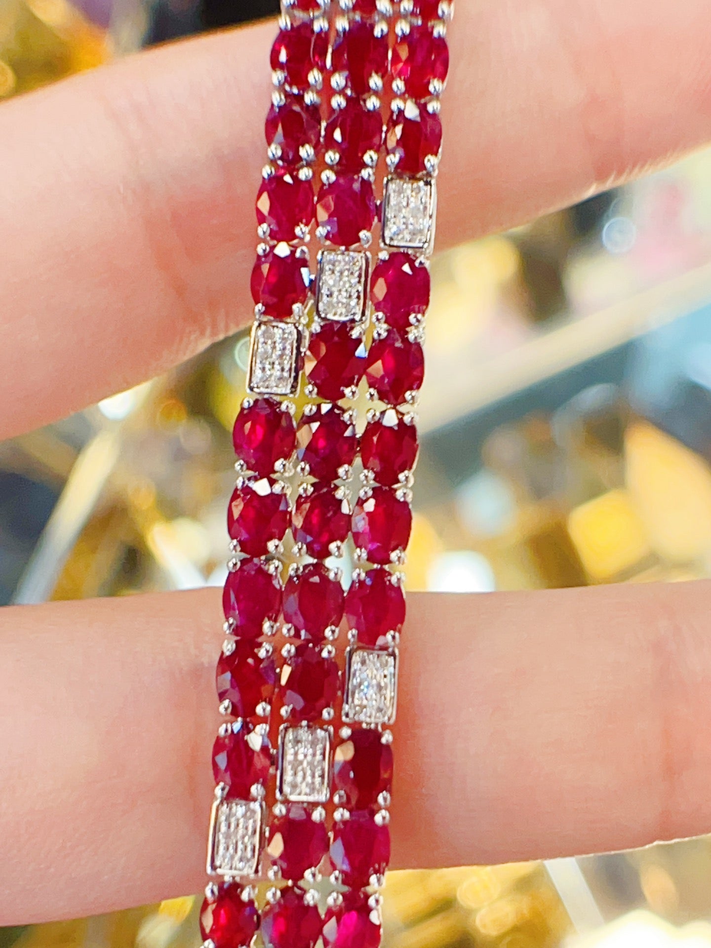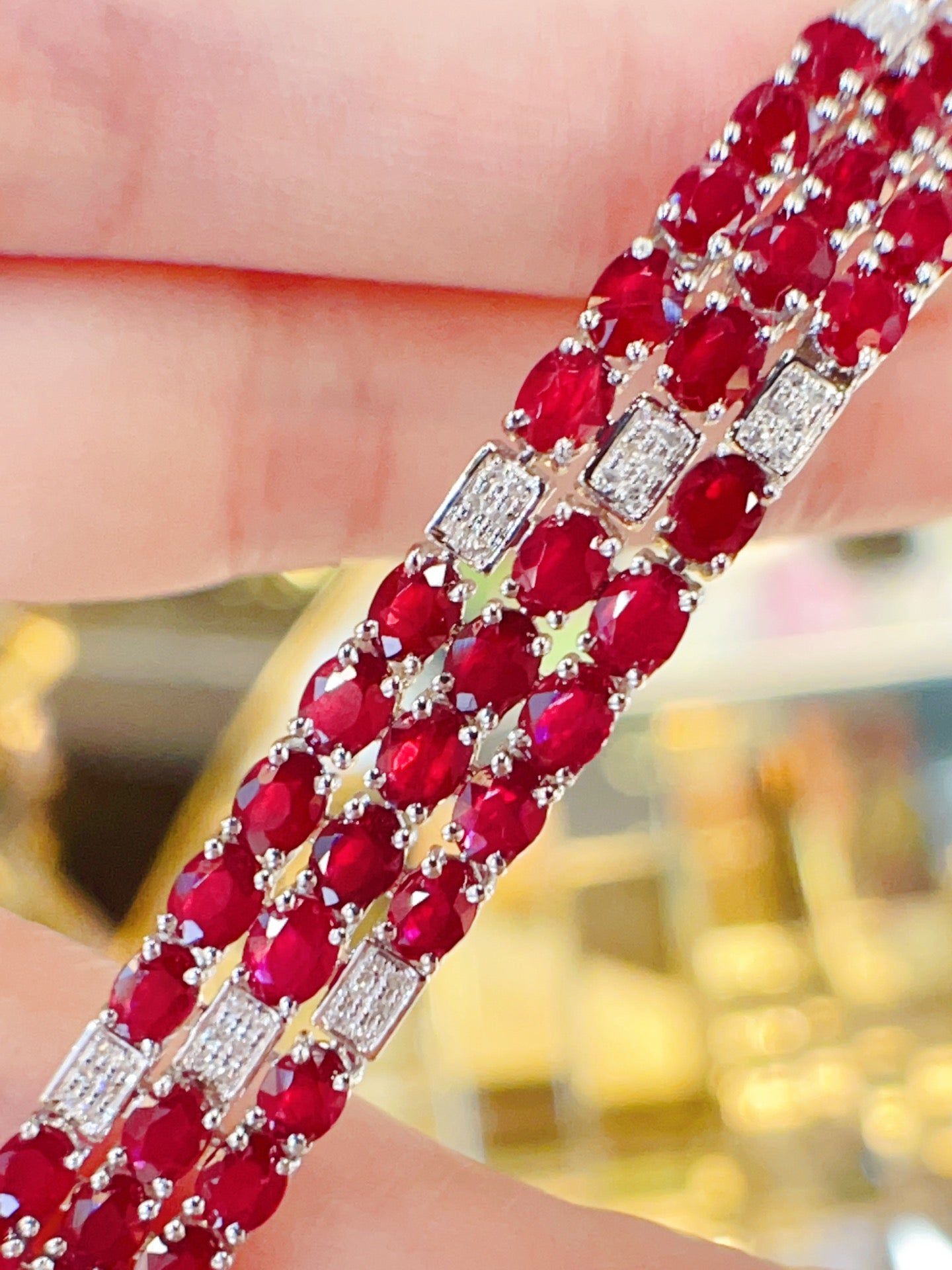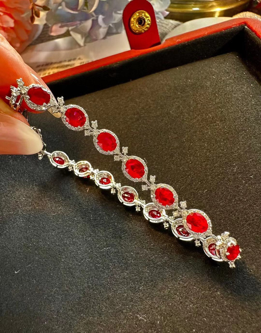 Luxury Natural Ruby Bracelet with Diamonds, Unique Art Deco Design, 18K Natural Diamond Bracelet